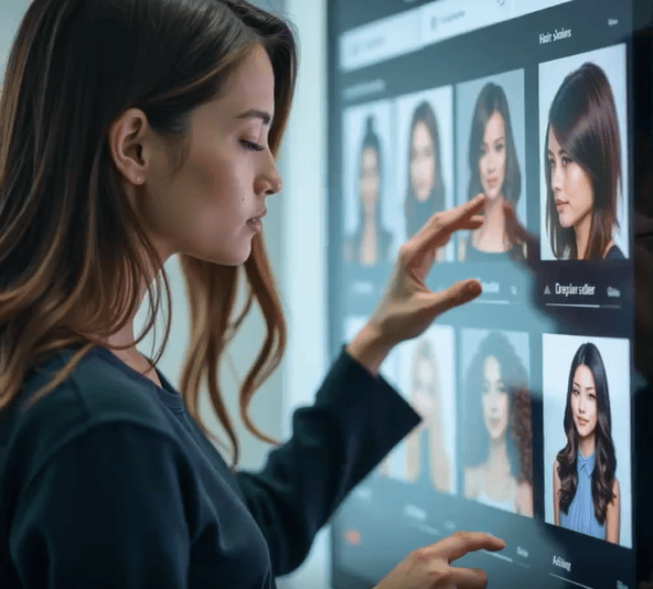 Using real-time camera detection and digital overlays, clients can preview hairstyles instantly — before making a commitment.